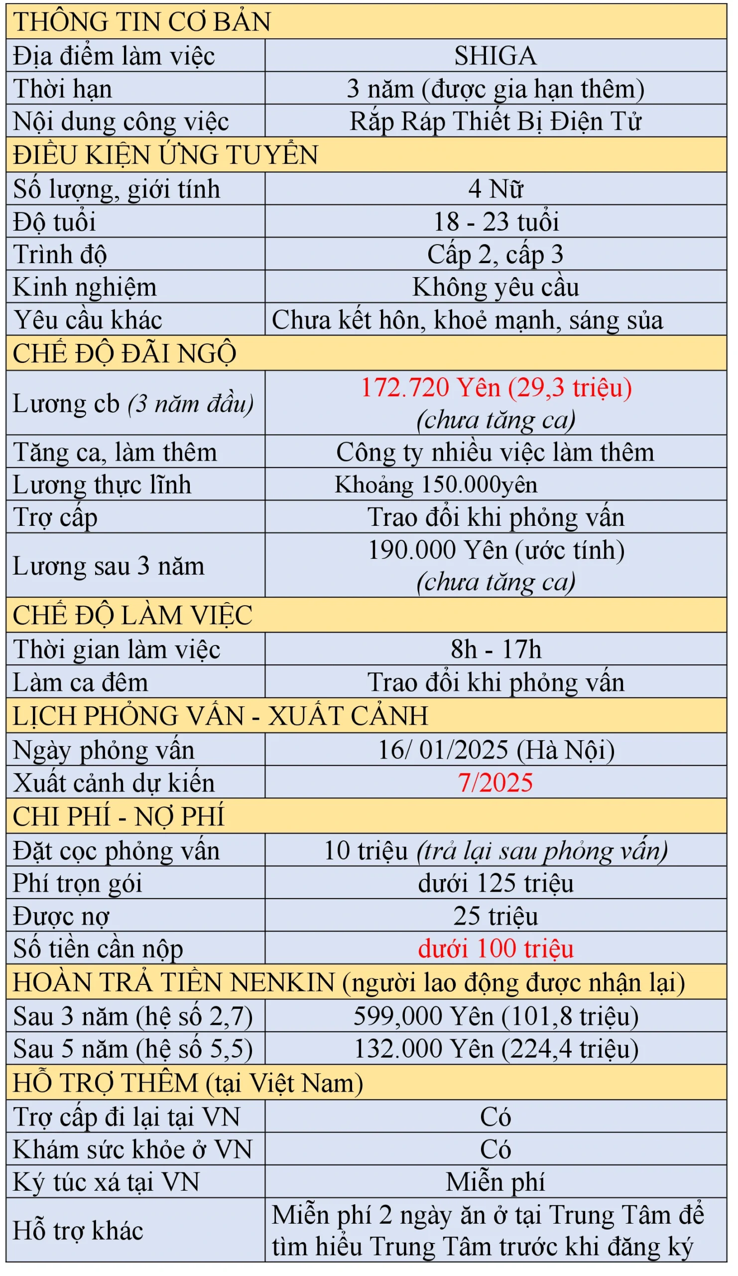 Nam 18-30 tuổi. Cốt thép ở Tokyo( bao đỗ). Lương CB Năm 1 (18,5man-31triệu), Năm 2 (21,5man-36 triệu), Năm 3 (23,5man-40 triệu)